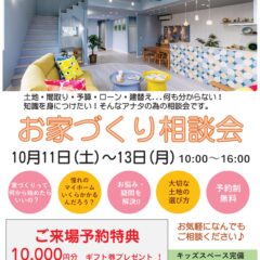 ☆終了しました 10月11日(土)・12日(日)・13日(月) ☆ お家づくり相談会 ☆