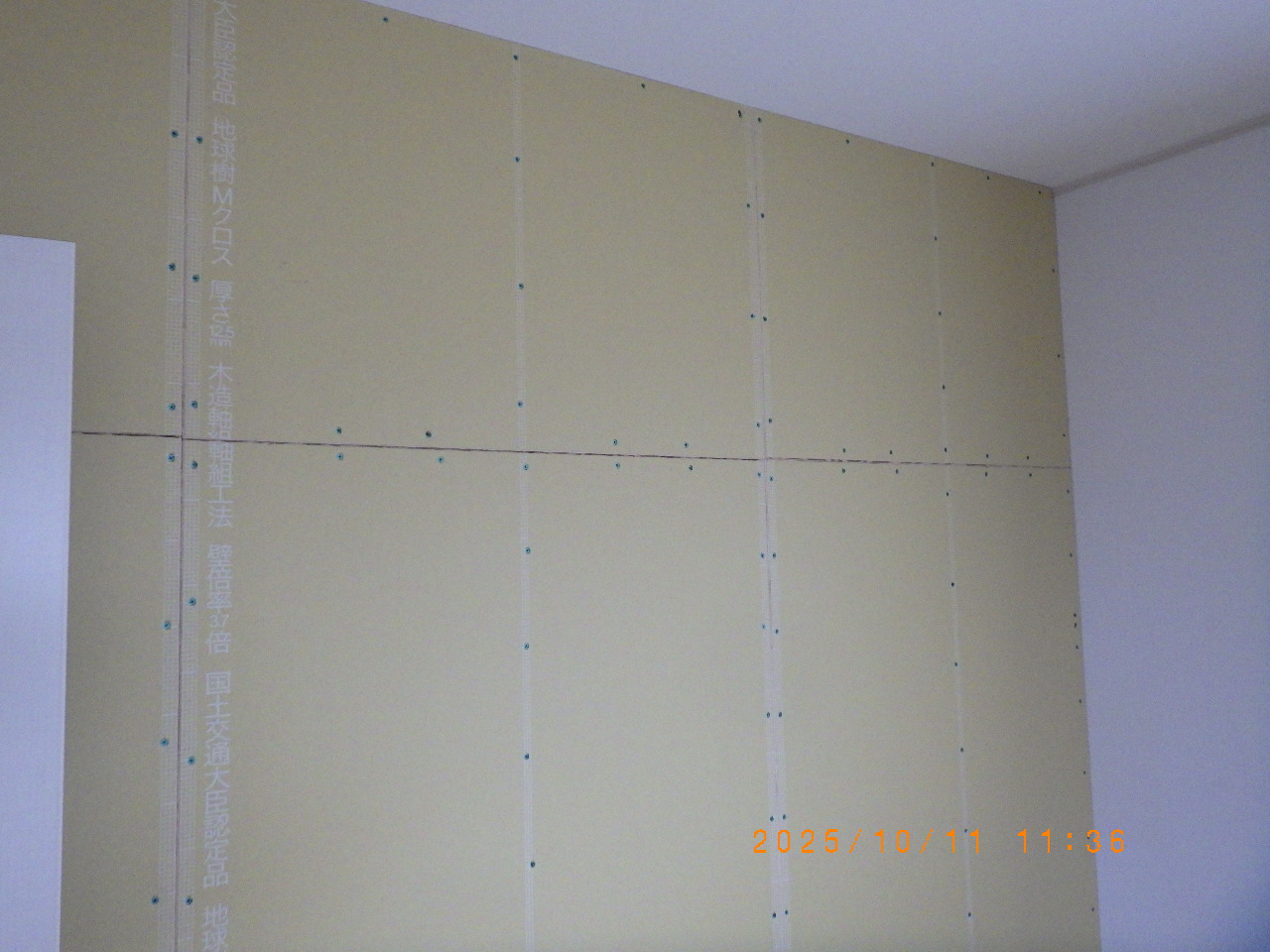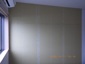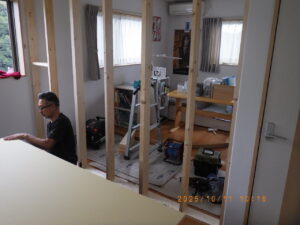 間仕切り壁には物を掛けたいとのお話もあり、クロス下地用合板を使用しました。