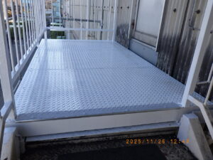 階段踊り場改修工事 2025.12.05 皆様お元気でしょうか。 今回は工場の階段の踊り場の改修工事をさせていただきましたのでご紹介させていただきます。 現状の床部分を解体し補強も入れて仕上げる事が出来ました。 安心してお使いいただけるかと思います。 ありがとうございます。