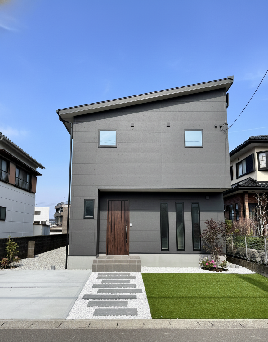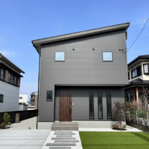 伝法の家 LDKは無柱空間でキッチンを回遊できる動線 広々としたリビング 回遊ができる対面キッチン たっぷり収納できるウォークインクローゼット シンプルながらも温かみのある空間 ホワイト基調で明るく清潔感のある空間 グレー×木目の組み合わせが穏やかな雰囲気を演出