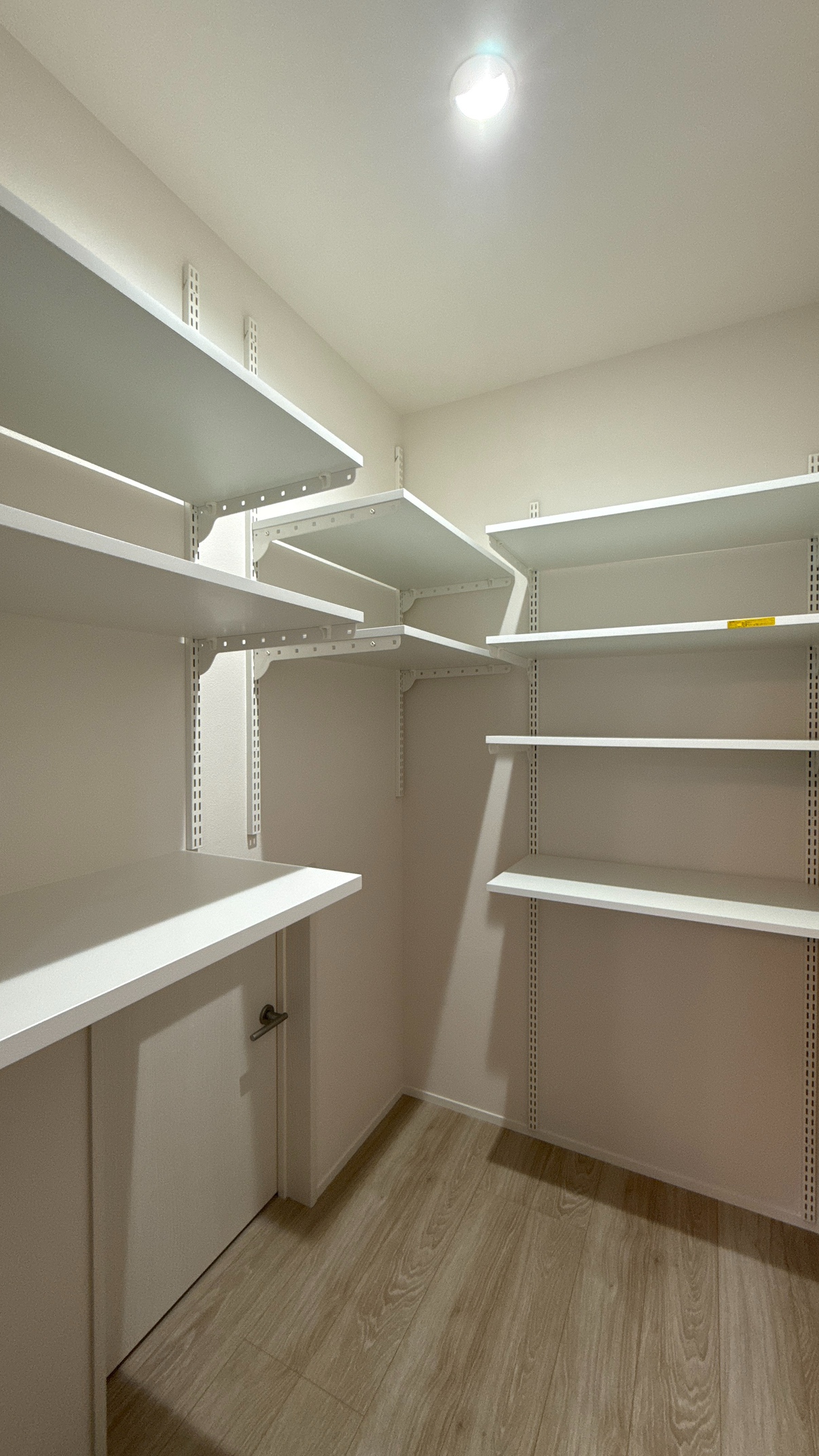 シューズクロークからパントリーへの小扉で荷物の搬入がラク。