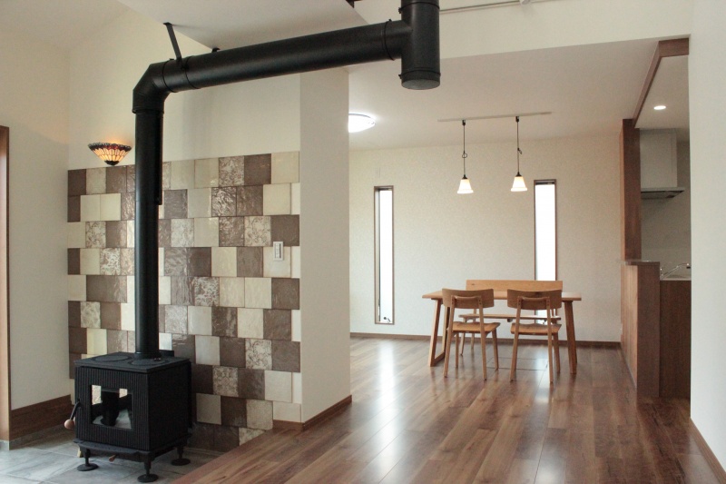 富士市E様邸 広々空間の薪ストーブがある家 煙突が印象的な外観 吹き抜けへつづくつづく…煙突 吹き抜けから下を見下ろすと ロッキングチェアでゆらゆら… ウッディーな壁と白い壁のコントラストが美しいです 対面キッチン 造作引戸の押入れを間接照明が柔らかく照らします 素敵な個性が光るタイルです 思わず深呼吸をしてみたくなりそうな個室です ガラスブロックから優しい光があふれます 階段のガラスブロックです