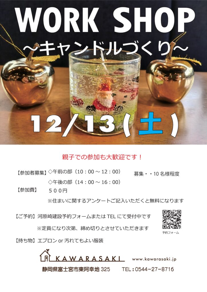 12月13日(土) 『WORK SHOP キャンドル作り』イベントを開催します!