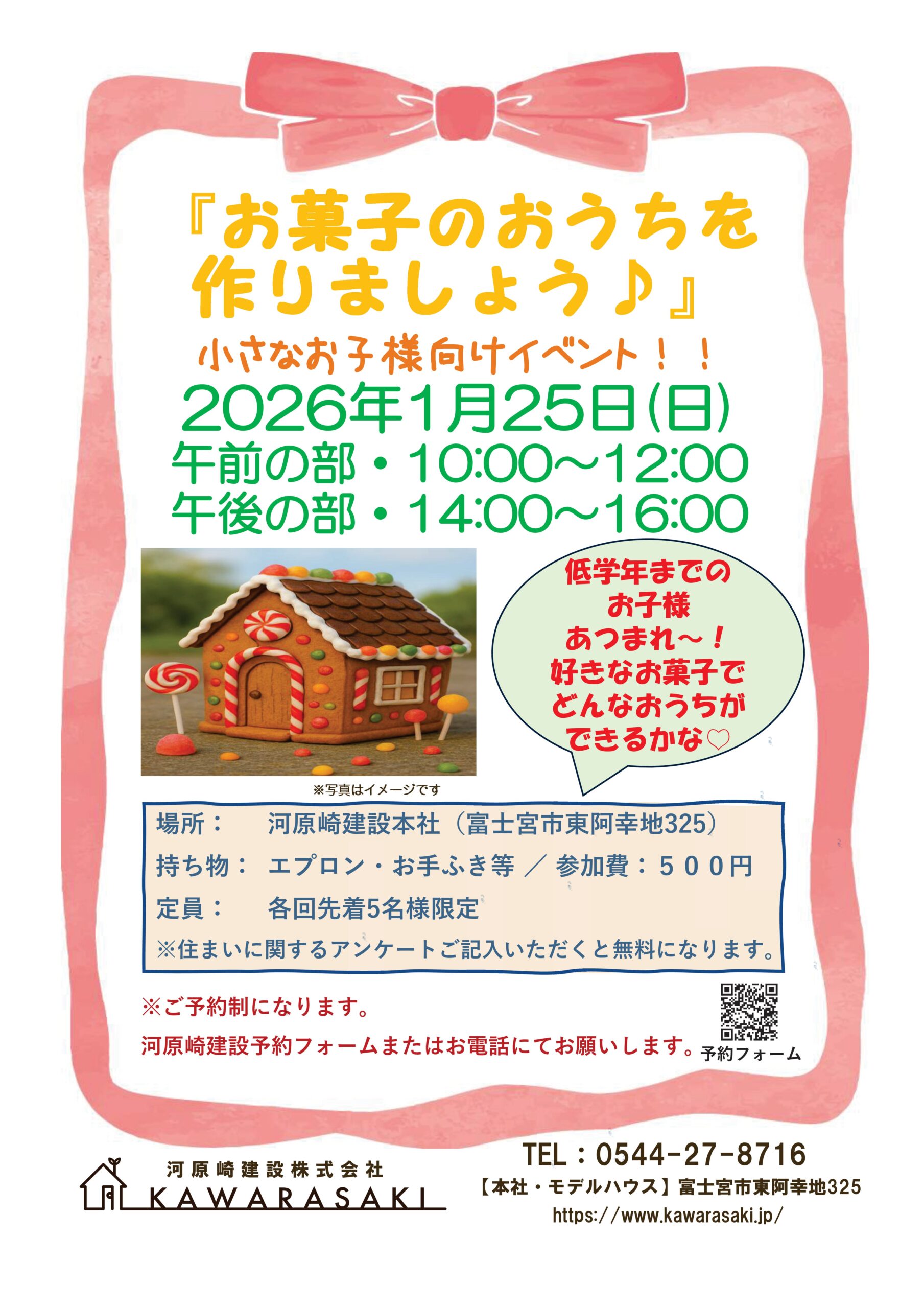 1月25日(日) 『WORK SHOP お菓子のお家づくり』イベントを開催します!